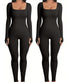 Women's Yoga Sports Fitness Jumpsuit Workout Long Sleeve Square Collar Clothing